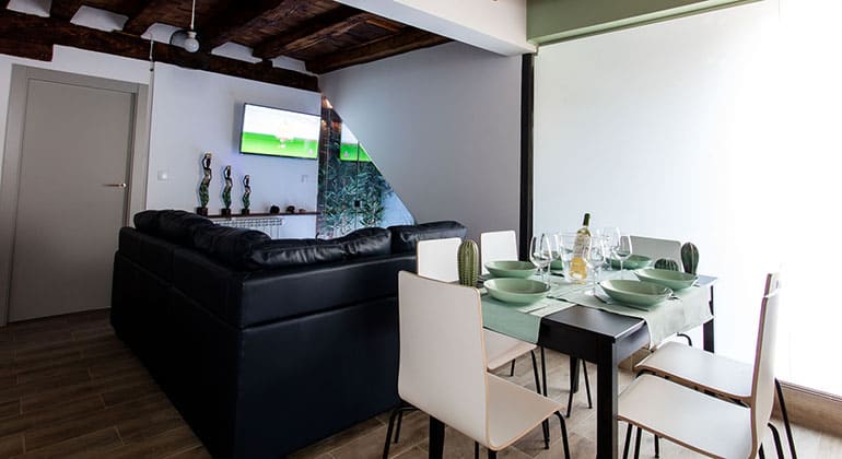 El salón tiene una gran luminosidad. Dispone de televisión y de un sofá cómodo. Suelo de parquet en todo el apartamento, excepto en el baño que tiene gres. Calefacción con termostato y WiFi gratis.